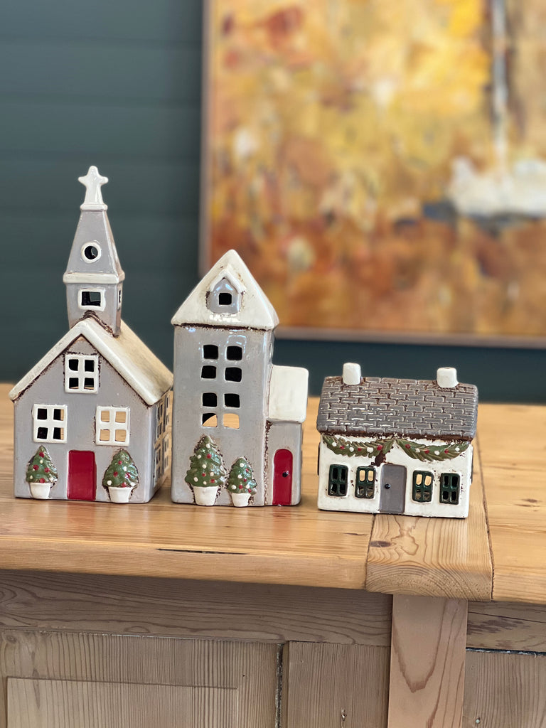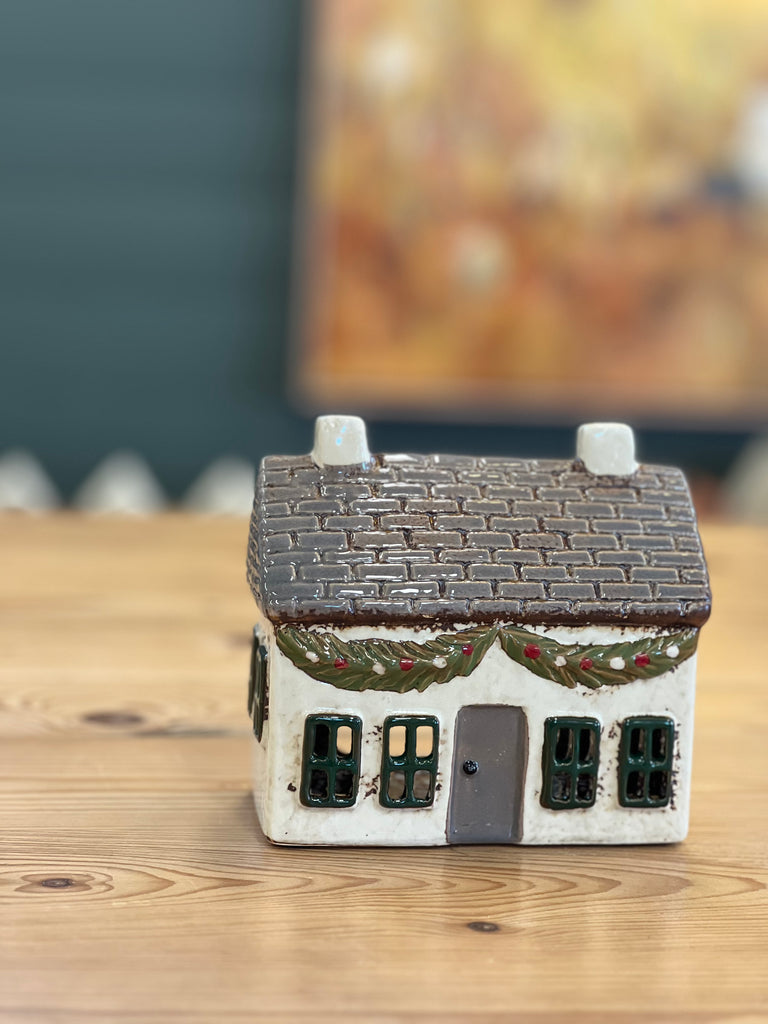 Ceramic Tea Light House - Christmas Wreath Cottage
