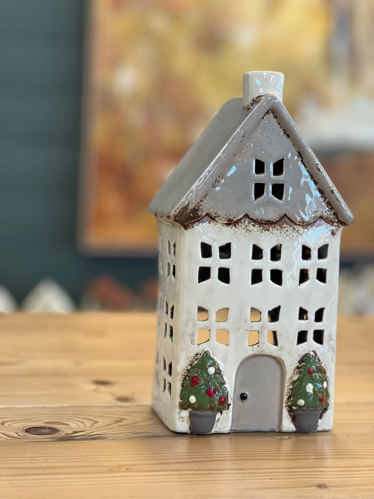 Create a magical village with these traditional tealight houses, designed to resemble festive scenes each house has intricate details and hand-painted features.